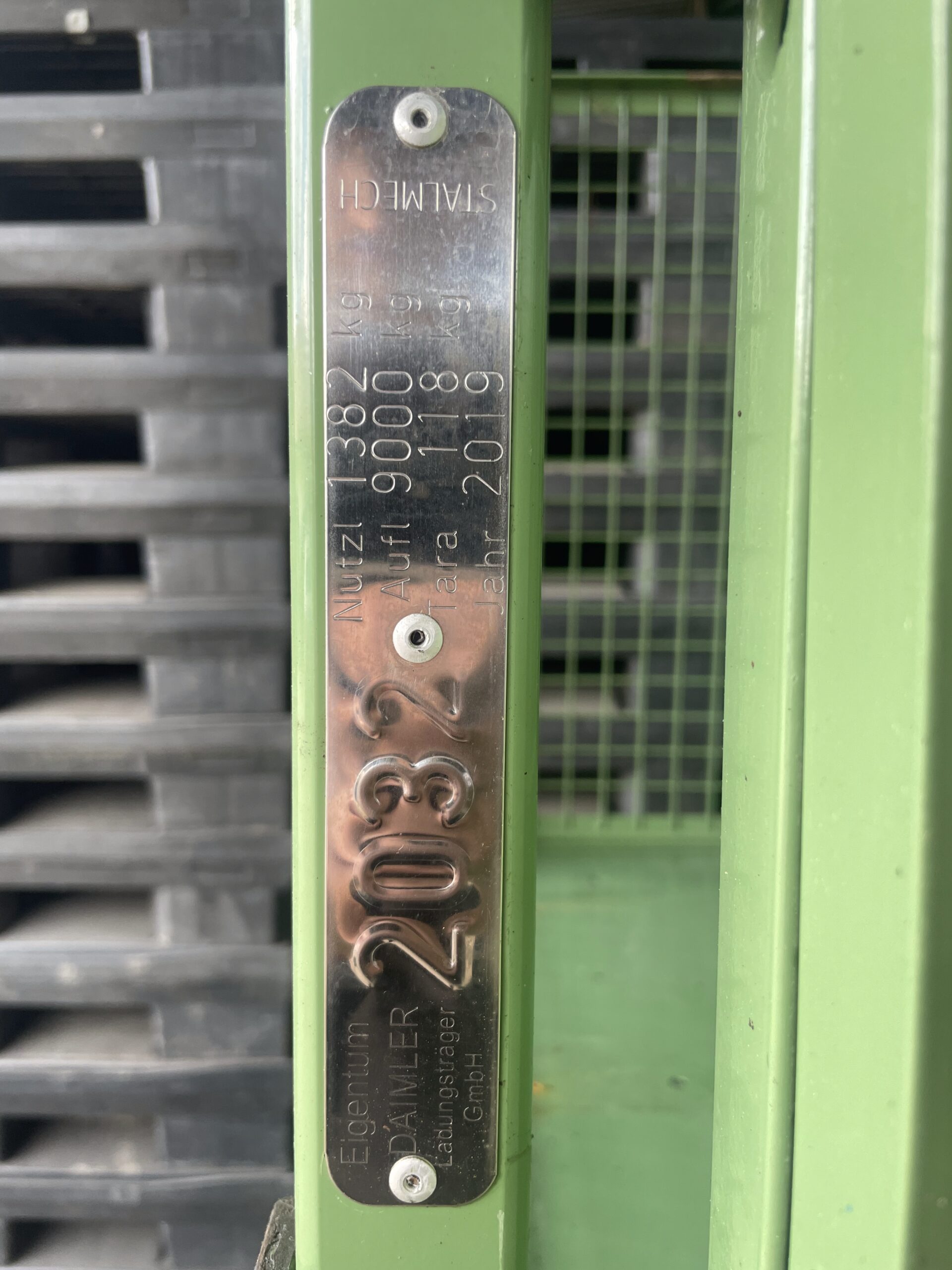 Large metal folding pallet – Daimler 2032 box. Transport cost savings when folded.