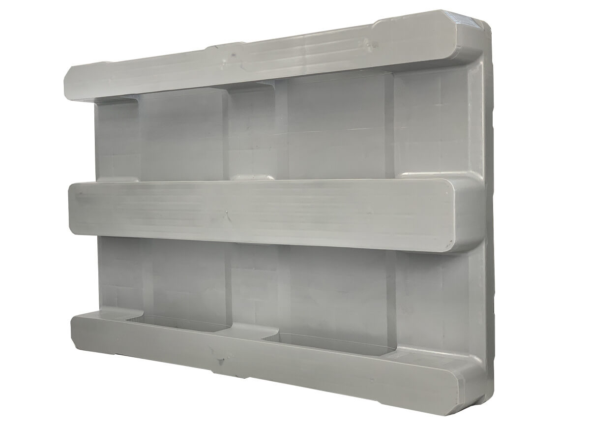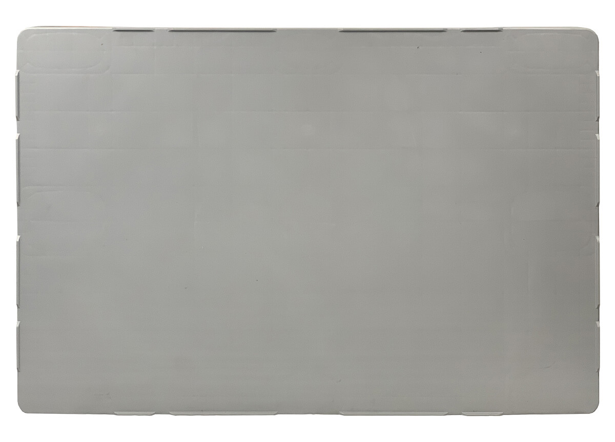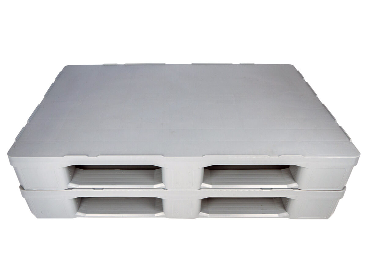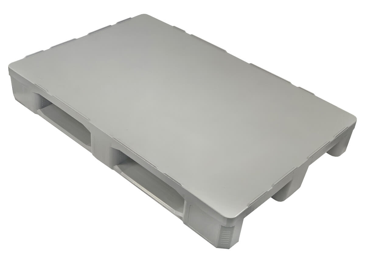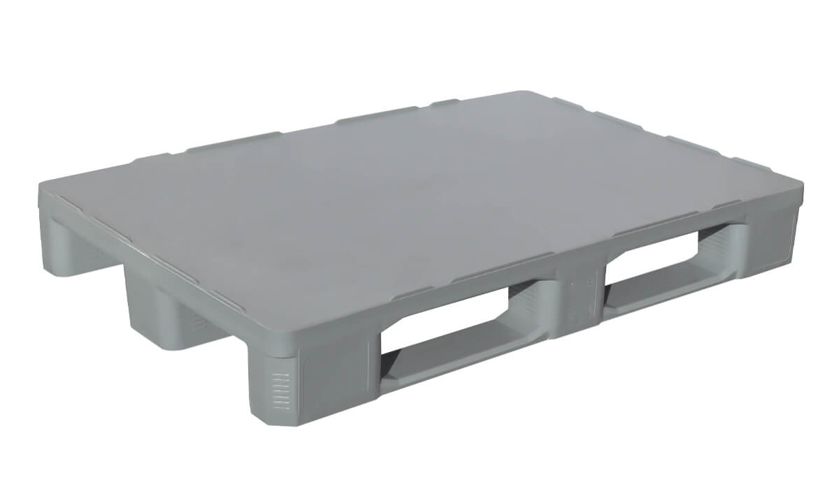 Hygienische Kunststoffpalette 1200×800×155 mm mit glatter Oberfläche, ideal für die Lebensmittel-, Fleisch- und Pharmaindustrie.