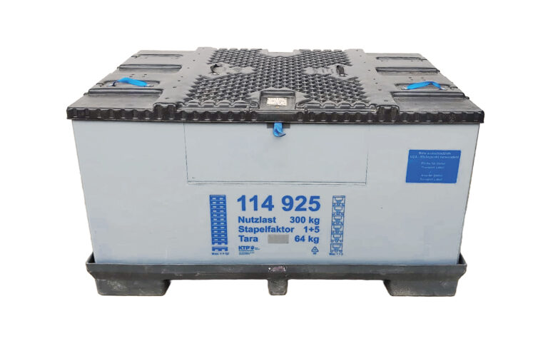 Die Boxen System 2000 114925 sind typisierte, leichte, faltbare und beständige Behälter, die in erster Linie zur Reduzierung des Platzbedarfs konzipiert sind, da sie in gefaltetem Zustand 3/4 des Volumens einsparen. Stapelbar mit der Möglichkeit des Bedruckens. Sie bestehen aus einer Kunststoffpalette, einem Ring und einem Kunststoffdeckel. Die Boxen lassen sich intuitiv falten und sind daher eine ideale Wahl für Mehrwegverpackungen. Wir bieten auch den Verkauf, das Leasing und die Vermietung von Boxen an – genau nach Ihren Bedürfnissen.